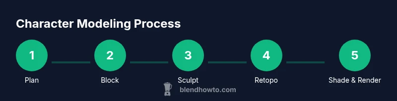 Learn Blender character modeling from concept to render. Plan references, block, sculpt, retopo, UVs, shading, hair, rigging, and final presentation with practical tips for clean topology and production-ready assets.