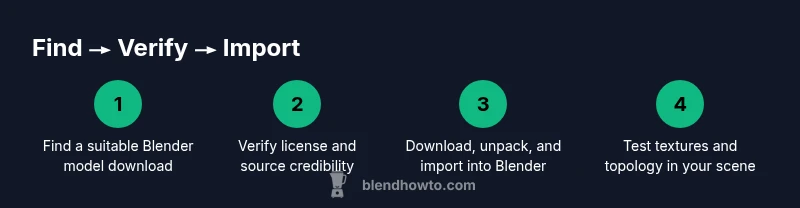 In this guide you will learn how to locate reliable Blender model download sources, evaluate license terms, and import assets into Blender without headaches. You'll understand common formats, licensing basics, and safety steps to avoid malware. By following practical steps from BlendHowTo, you’ll build a reusable workflow for sourcing models that fit your project needs.