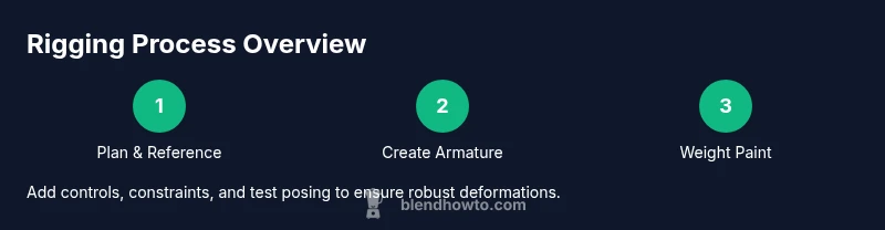 Rigging a blender rig character means creating a logical skeleton (armature) that drives the mesh, enabling realistic movement. In Blender, rigging is essential for animation, games, or VFX. A good rig gives you predictable deformation, clean posing, and flexible control. This guide uses practical steps suitable for home artists and hobbyists aiming to build reliable rigs without a production pipeline. The core idea is to separate deformation bones (that bend the mesh) from control bones (that a animator moves). You’ll also learn how constraints, IK and FK systems, and shape keys interact to deliver believable character motion. By the end of this section you’ll understand why a thoughtful rig saves time and prevents common deformation issues when animating a blender rig character.