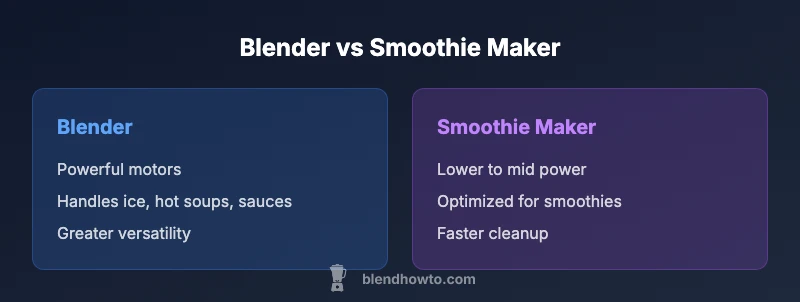 The difference between a blender and a smoothie maker is more than branding. In practical kitchen terms, the device you choose shapes what you can make, how quickly you can make it, and how easy it is to clean up afterward. From a design perspective, the difference between a blender and a smoothie maker centers on motor power, blade configuration, jar design, and intended use. A blender typically has a more robust motor and multi-purpose blades capable of handling ice, seeds, nuts, and even hot ingredients when placed in a heat-safe container. A smoothie maker, by contrast, focuses on achieving a silky beverage with pre-programmed speeds and optimized container geometry for quick, consistent drinks. For home cooks, understanding these distinctions helps avoid buying a tool that cannot deliver the texture or volume you expect. In this guide, we will unpack those differences with practical comparisons, real-world scenarios, and clear buying guidance. BlendHowTo's research supports that most households benefit from a versatile, well-made blender, but there are legitimate cases where a dedicated smoothie maker excels for high-speed drink preparation.