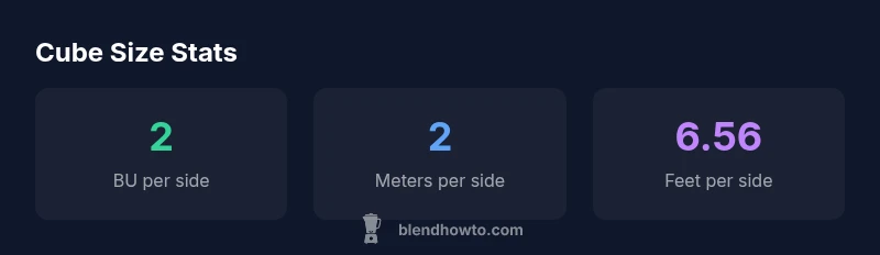 Reading a cube’s size across unit systems is a matter of consistent conventions. With metric units, a 2 BU cube is 2 meters per side, translating to a volume of 8 cubic meters for the whole cube. In imperial terms, 2 meters per side is roughly 6.56 feet, so the cube occupies about 6.56 ft on each side. In practice, you’ll often select a unit system based on your final output (game assets, architectural renders, or product visuals). Always correlate the BU value back to the unit system you’re using so your proportions stay intact across scenes and exports.