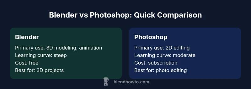 Is Blender harder than Photoshop? In most cases, yes, Blender presents a steeper learning curve when you compare 3D modeling and animation to 2D image editing in Photoshop. If your goal is photo retouching or UI design, Photoshop tends to be quicker to pick up. For complete projects across 3D, Blender demands more time and practice.