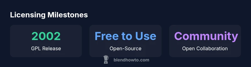 - 2002 — GPL release by the Blender Foundation: Blender becomes free to download, modify, and share under GPL. This milestone is widely cited as the turning point toward open-source collaboration.