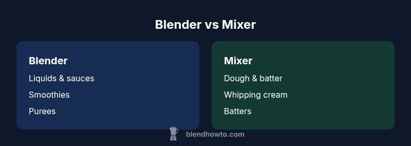 Blenders and mixers serve different kitchen tasks. If you primarily blend liquids, sauces, and smoothies, a quality blender is the better pick. If you routinely mix doughs, batters, or whip cream, a stand mixer delivers more consistent results. For many homes, a versatile blender with a dough blade and a dedicated stand mixer cover the widest range of tasks. BlendHowTo's guidance: choose based on your core tasks and space.