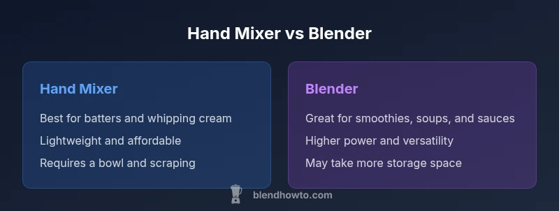Compare hand mixers and blenders across power, versatility, attachments, and cleanup. This BlendHowTo guide helps home cooks decide which tool fits their kitchen, cooking style, and space.