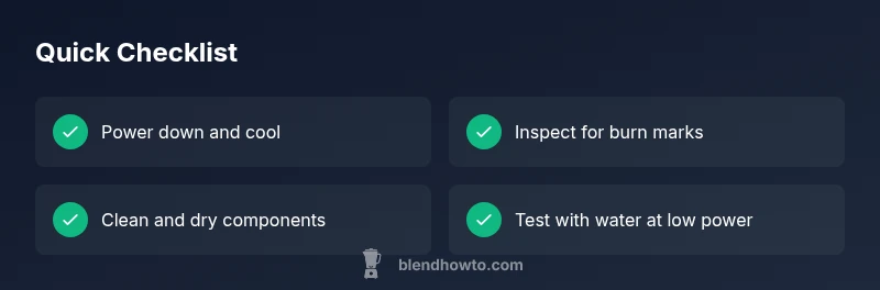 A burnt odor from a blender usually signals an overheating motor, burned residue, or damaged electrical components. In many cases, a short heat surge during a heavy blend or a clogged blade can push the motor past its safe limits. According to BlendHowTo, most burnt smells originate from overloads caused by running the unit too long or with ingredients that clog airflow. If you notice smoke or a sharp acrid scent, power off immediately and unplug the device to prevent further damage. This section explains how to interpret the odor and what it suggests about the underlying problem. You'll learn how to differentiate a temporary smell from a true failure and why fast, safe action protects both your blender and your kitchen.