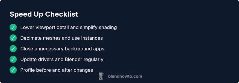 Discover practical, step-by-step fixes to speed up Blender performance. Learn how to identify bottlenecks, optimize scenes, and choose hardware and settings that cut render times and improve viewport responsiveness. Updated 2026 insights.